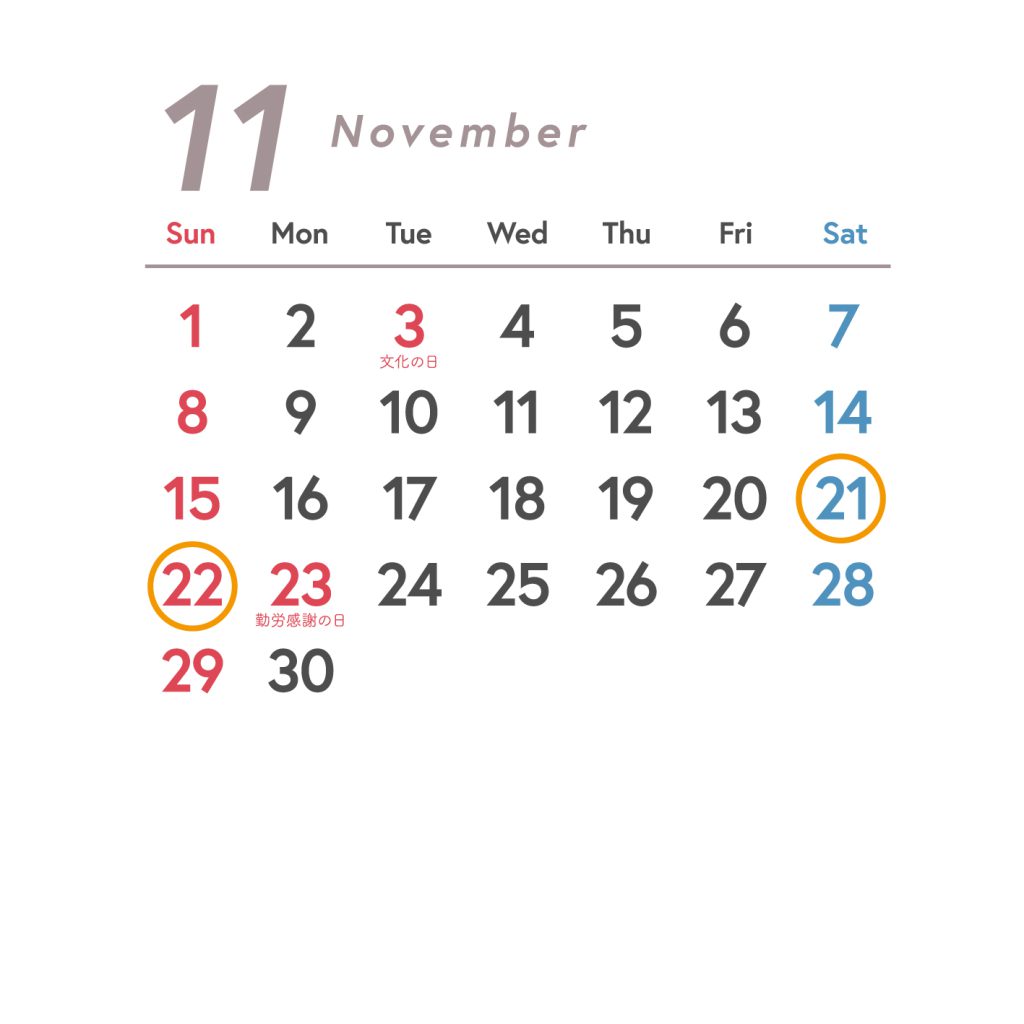 11月の滞在日は、14(土)・15(日)・28(土)・29(日)。