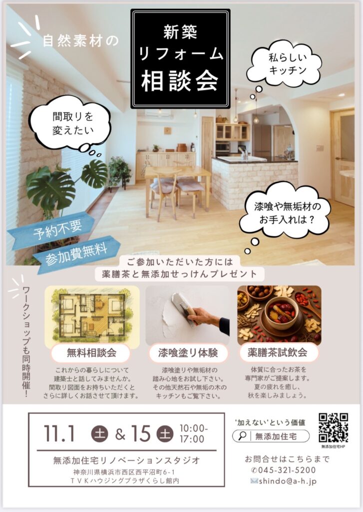場所は「無添加住宅リノベーションスタジオ」(横浜市 平沼橋駅徒歩5分)。