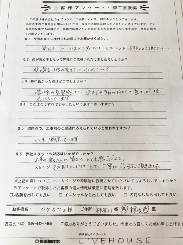 築16年 一戸建てトイレリフォーム 横浜市 ジケカフェ様