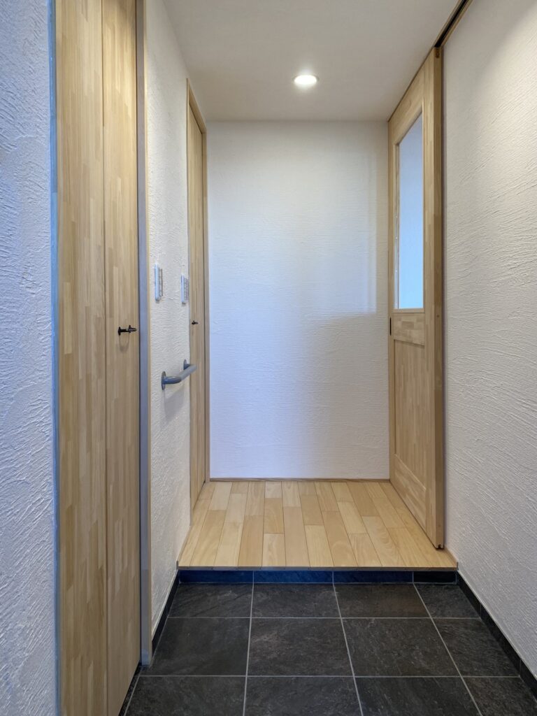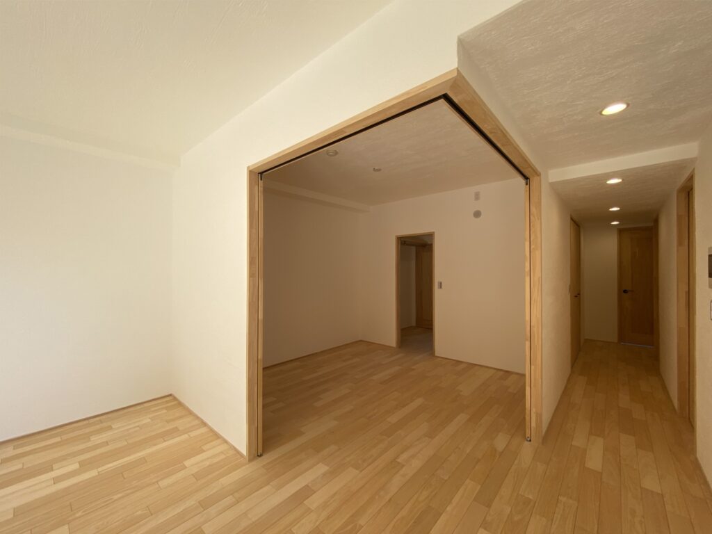 無垢フローリング材や米のり集成材の他、ドアや引戸も気に入ってるので同じものを、と迷いなくご希望。