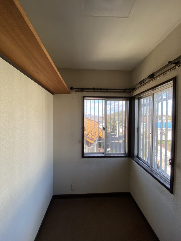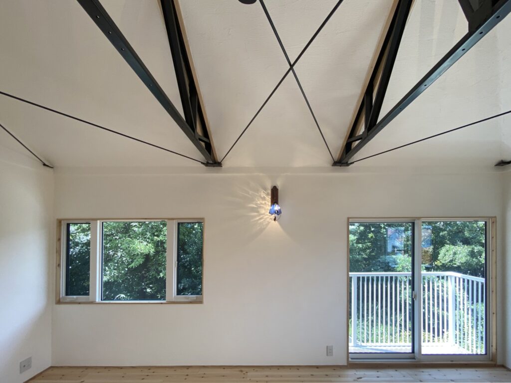 After 個室2 一部屋に戻し、左手の窓の開け方も変えました。勾配天井にすると同じ部屋サイズなのに広く感じて気持ちいいですよ