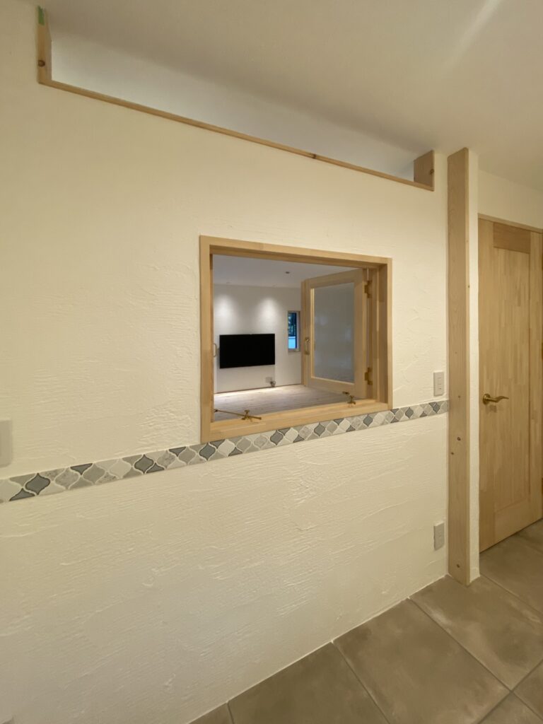 キッチンとの間の木製窓をあけたところ